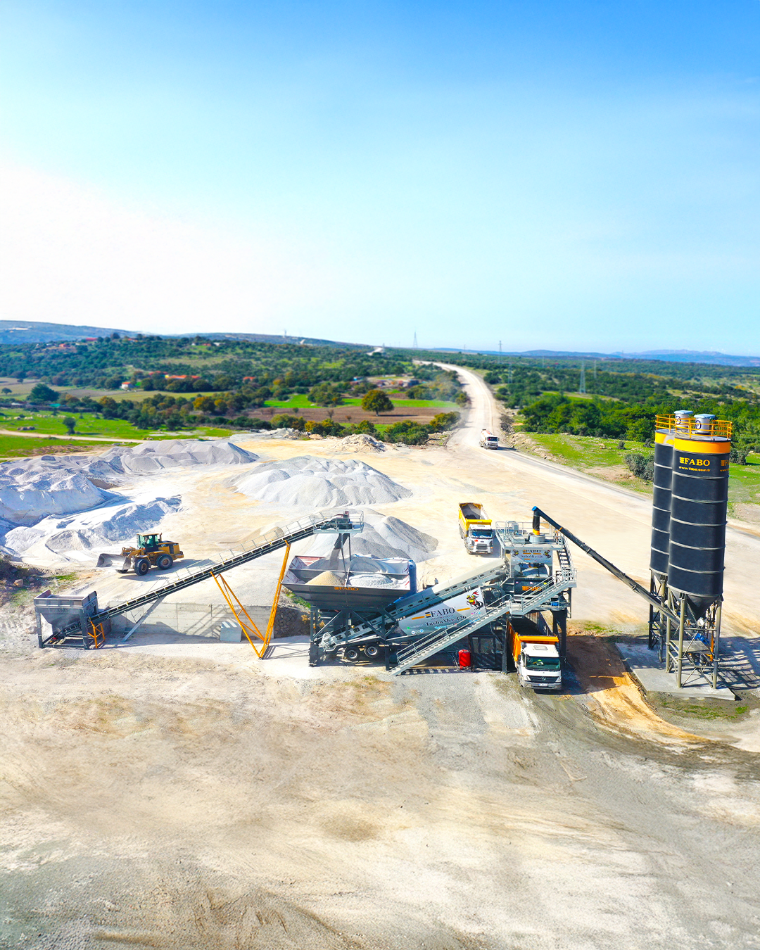 Thanks to its compact design, FABO Mobile Concrete Batching Plant is the number one solution partner for our customers who want to produce concrete in restricted construction site areas. The Mobile Concrete Batching Plant can be transported easily and at low costs.