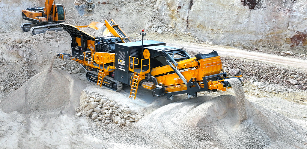 Portable crushing and screening plants generally consist of components such as a primary crusher, secondary crusher, vibrating screen, feeding conveyor, carrying conveyor, and feeding bunker. The material is first fed to the primary crusher where it is broken into pieces. The material is then transferred to the secondary crusher where it is reduced to smaller sizes. Finally, thanks to the vibrating screen, the material is separated according to the desired sizes and made ready for use.