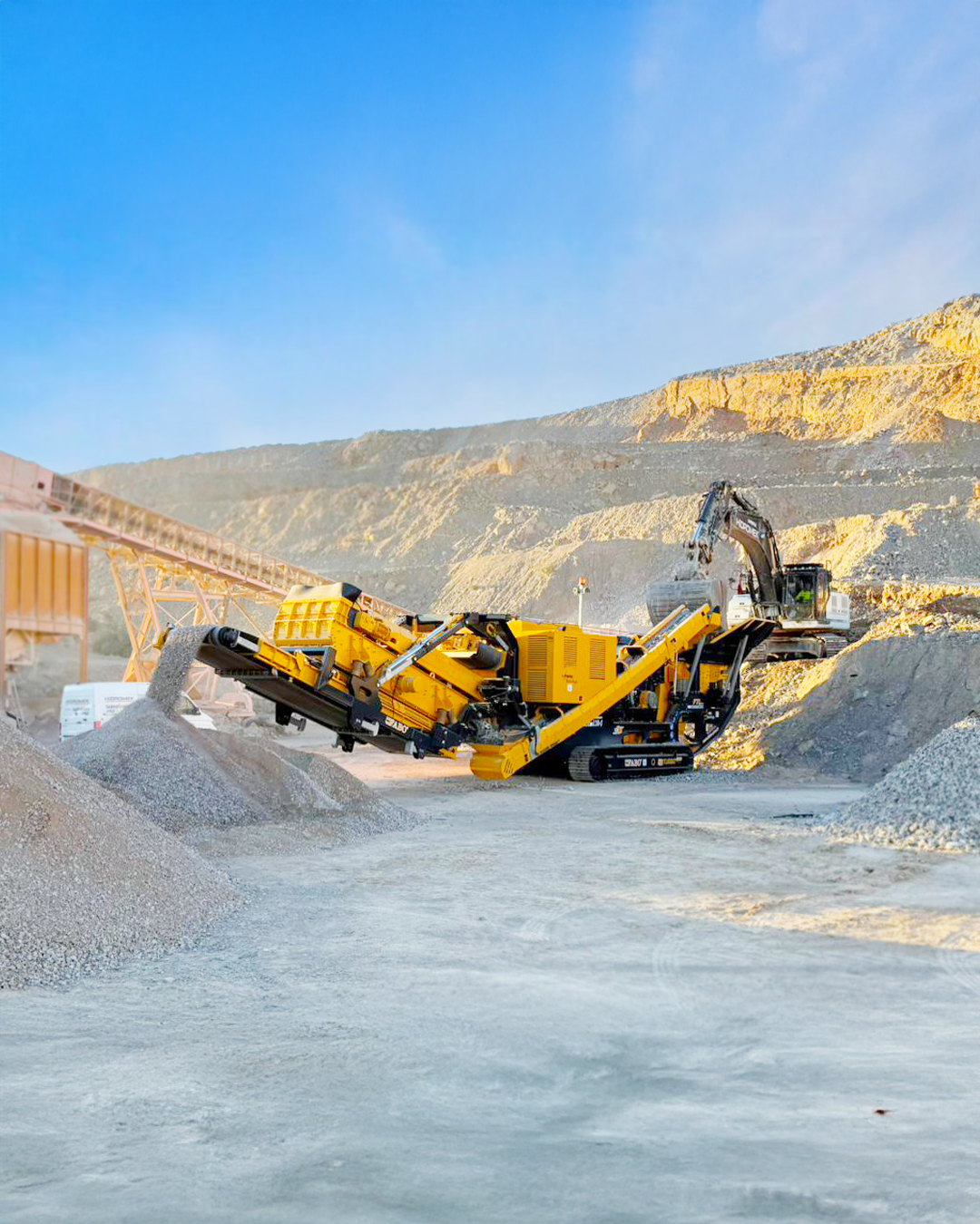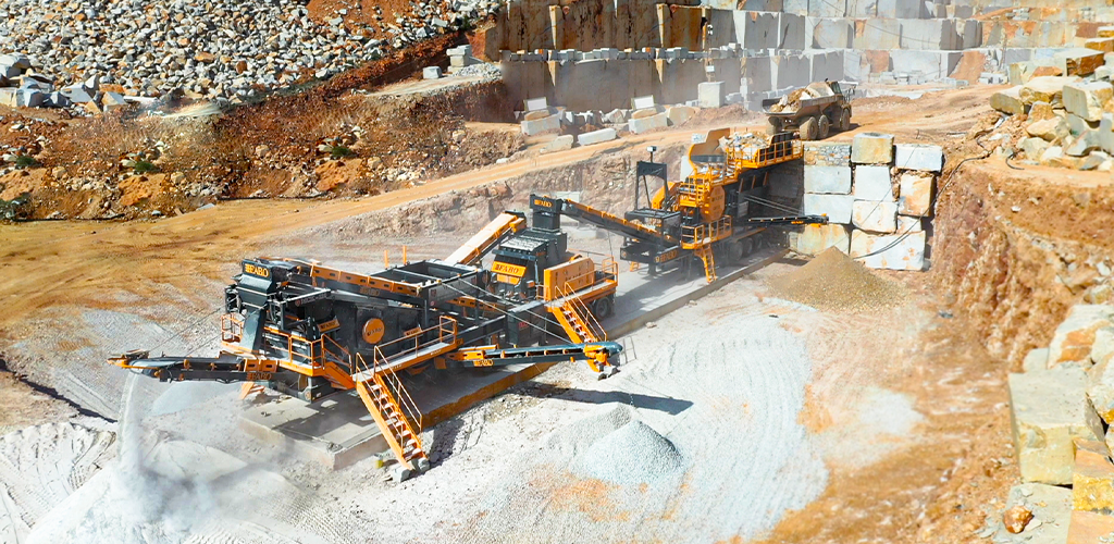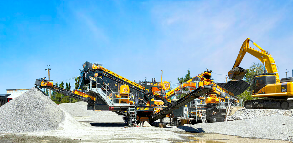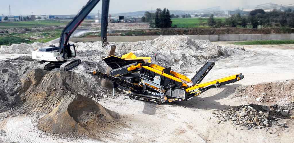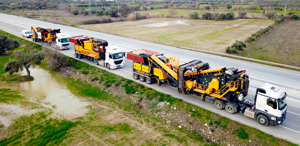 Portable crushing and screening plants generally consist of components such as a primary crusher, secondary crusher, vibrating screen, feeding conveyor, carrying conveyor, and feeding bunker. The material is first fed to the primary crusher where it is broken into pieces. The material is then transferred to the secondary crusher where it is reduced to smaller sizes. Finally, thanks to the vibrating screen, the material is separated according to the desired sizes and made ready for use.